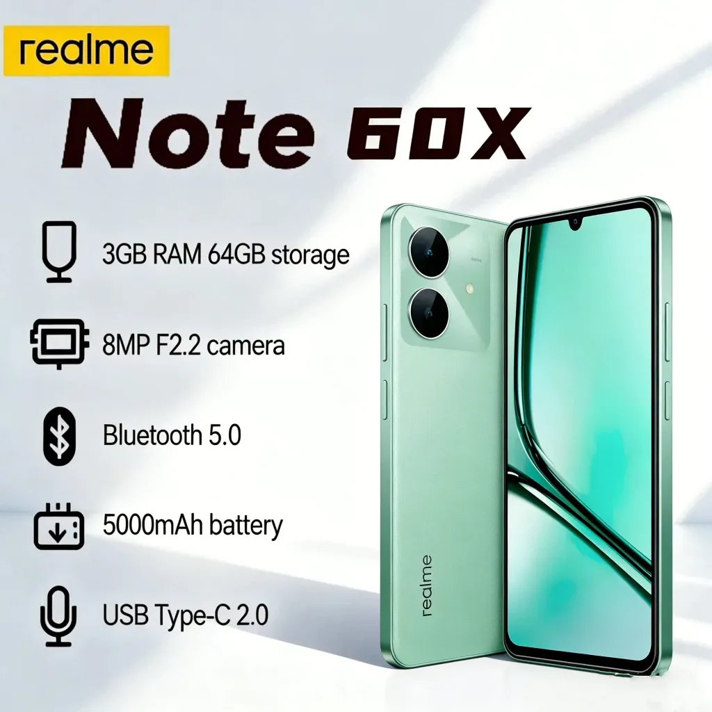 Realme Note 60X 4G 64GB+3GB RAM, Processador Unisoc T612, Versão Global, Bateria 5000Mah