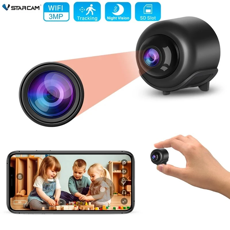 Câmera de Vigilância de Segurança Indoor Vstarcam Mini WiFi Baby Monitor, Visão Noturna IR, Gravador De Vídeo De Áudio, Câmera IP, 3MP HD