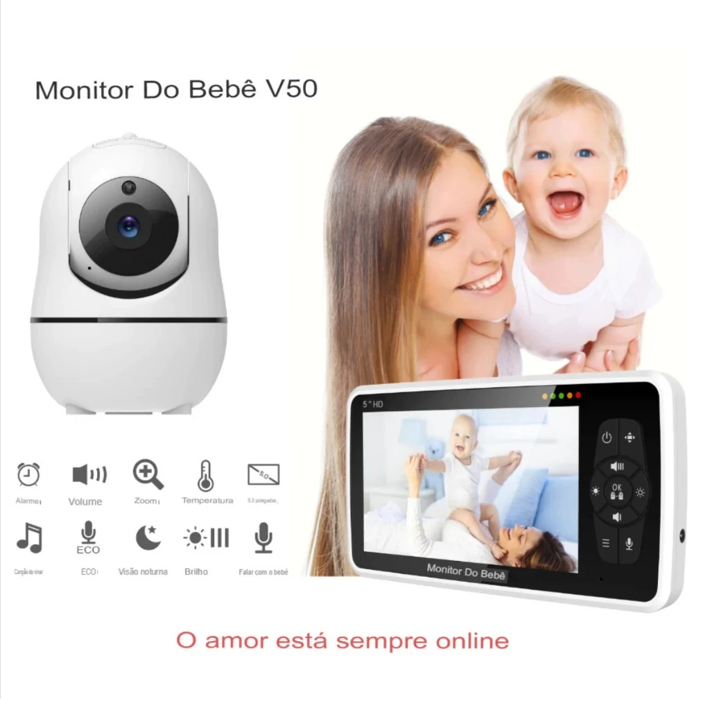 Babá Eletrônica Baby Monitor Com Tela HD5 Câmera 360º Sem Fio, Audio E Temperatura SM50 Melhor que a VB603 Tak Tark
