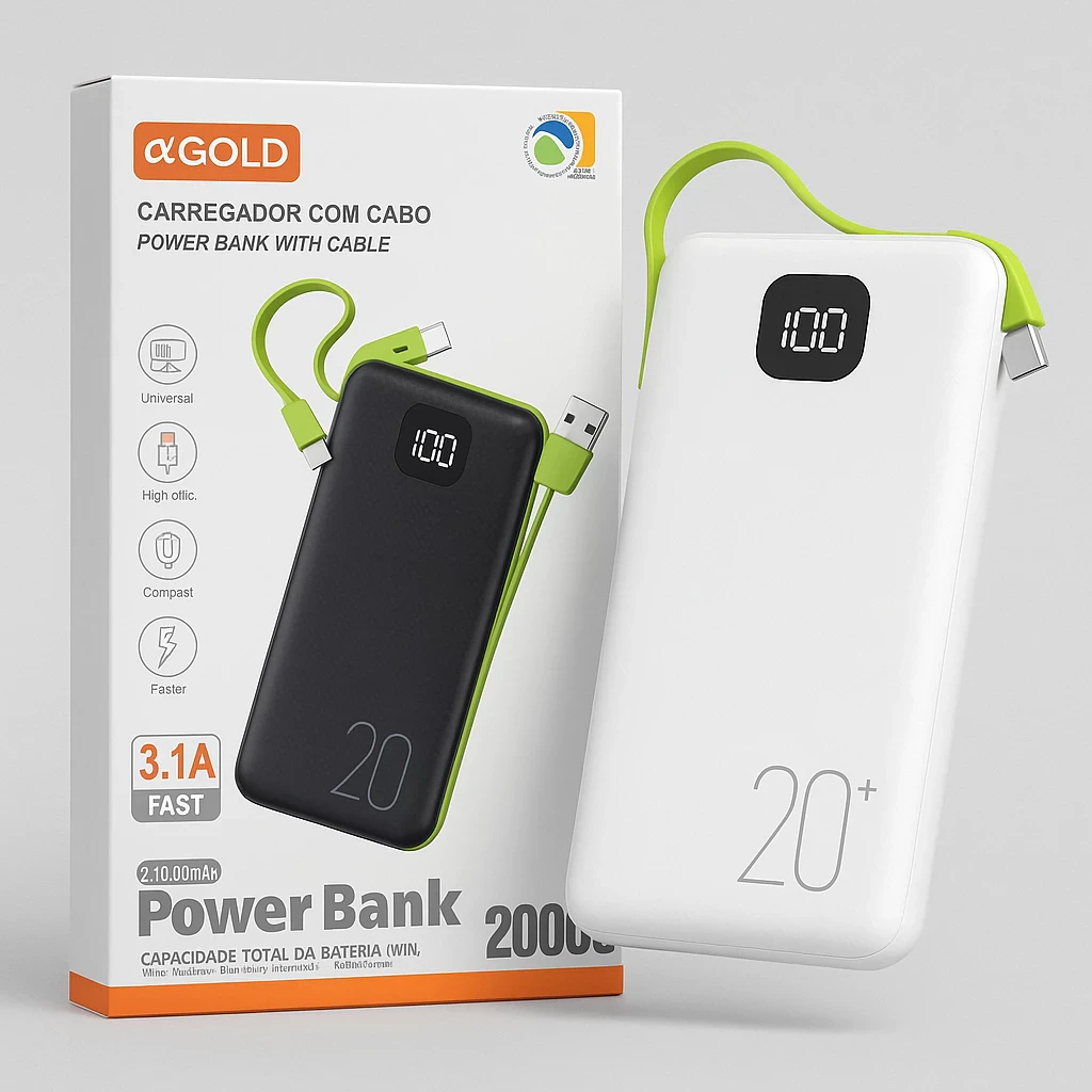Power Bank α-Gold 20000mAh Original – Carregador Portátil