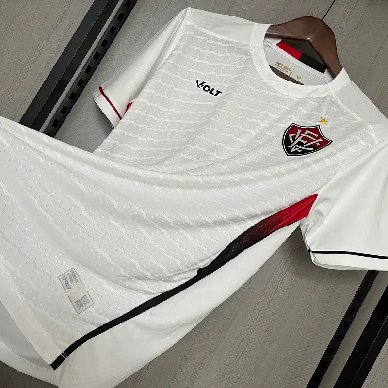 Manto Vitória Jogo 2 - MASCULINA 2025/26: autenticidade e desempenho para torcedores apaixonados. Confeccionado com tecido resistente e ajuste anatômico, proporciona conforto e durabilidade durante toda a partida. Perfeito para jogos, treinos e eventos esportivos, permite demonstrar seu orgulho pelo Vitória com estilo e segurança. Garanta já o seu e vista a camisa tailandesa com confiança.