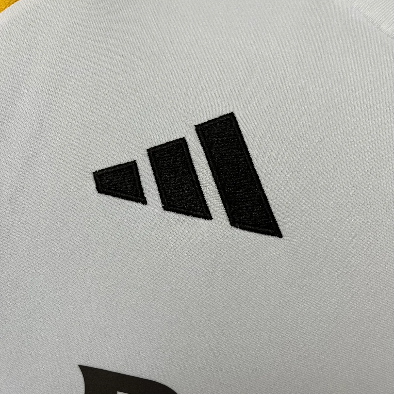 Manto Real Madrid 2025/26 Jogo 1 - MASCULINA 2025/26: O uniforme oficial que representa a paixão e a tradição do clube. Com design moderno e tecnologia avançada, oferece conforto e performance para torcer com estilo. Ideal para jogos, treinos ou colecionadores que valorizam a autenticidade. Garanta já o seu e demonstre seu apoio ao Real Madrid com confiança.