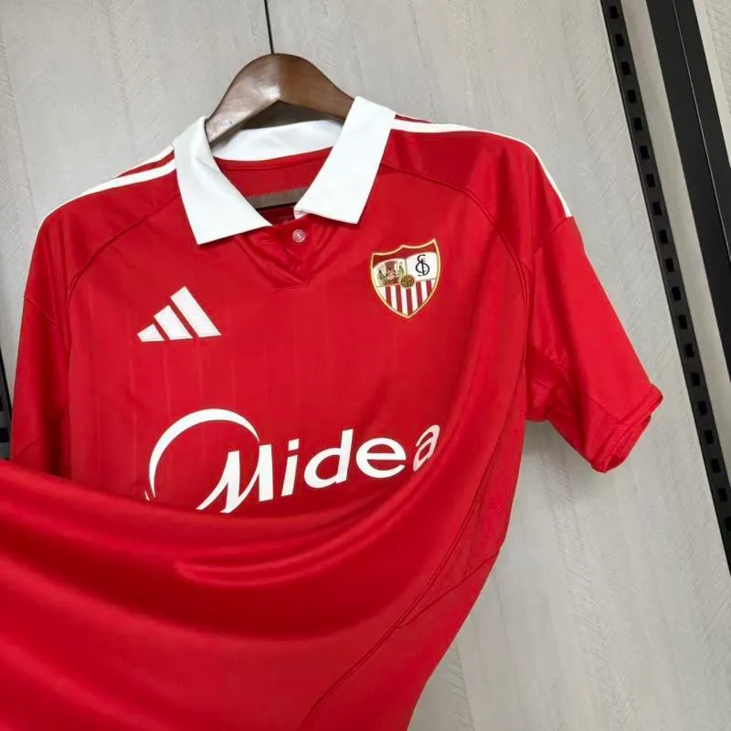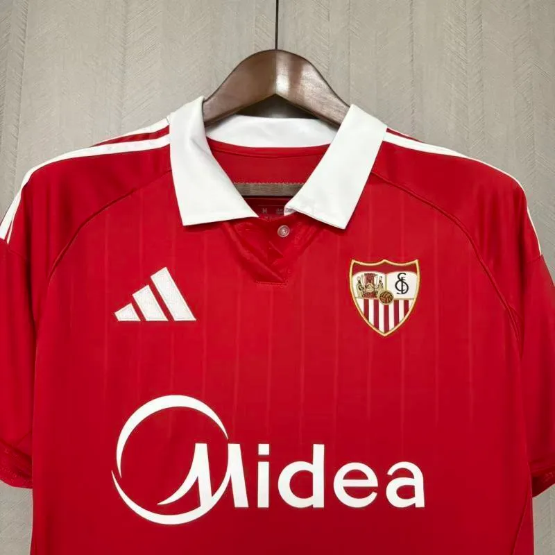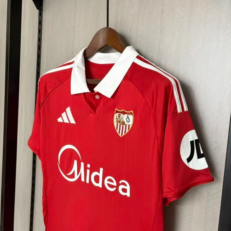 Manto Sevilla Jogo 2 - MASCULINA 2025/26: estilo e desempenho em campo. Esta camisa tailandesa traz design exclusivo da temporada 2025/26, combinando conforto e alta qualidade para torcedores e atletas. Ideal para jogos, treinos ou como peça de coleção, ela destaca sua paixão pelo Sevilla com autenticidade. Garanta já a sua e vista o manto com orgulho em todas as ocasiões.