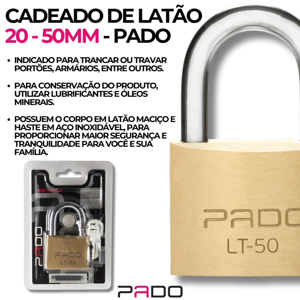 - Indicado para trancar ou travar portões, armários, entre outros.