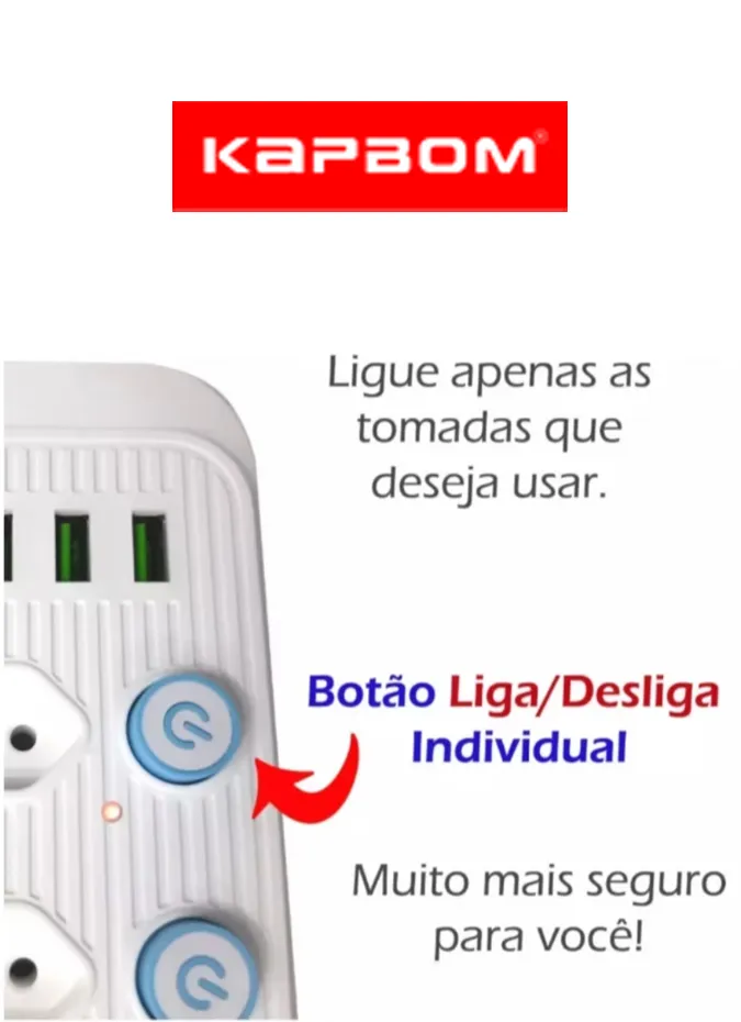 Economia de Energia: Os botões individuais permitem desligar as tomadas que não estão em uso, reduzindo o consumo desnecessário de energia.