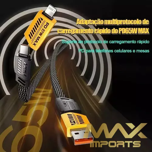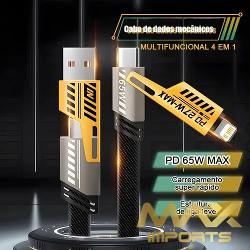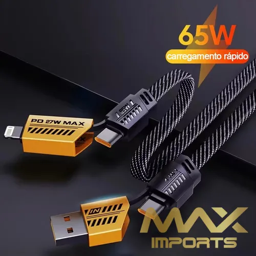 Cabo De Dados De Carregamento Rápido 4 em 1 TURBO 65WPD 27W adequado para iPhone Samsung Xiaomi
