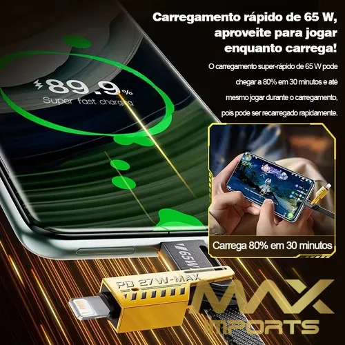 - Suporta PD 65W/Lightning 27W carga rápida