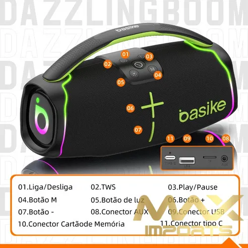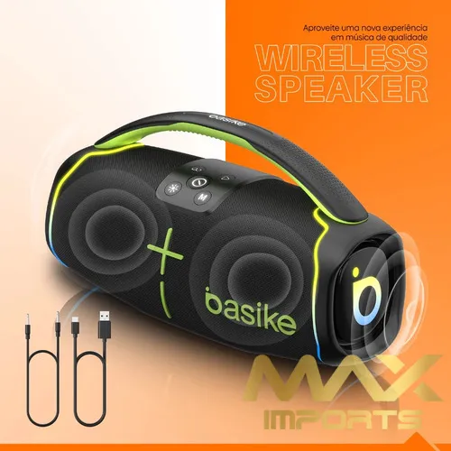 Basike Caixa de Som com Alça Premium Portátil com Bluetooth - PRETO RAD015