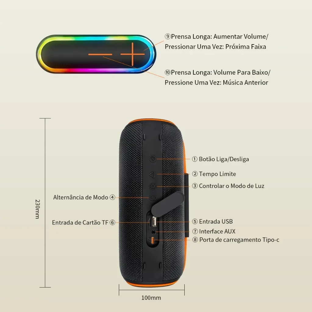 7. Ampla compatibilidade: Este caixa de som Bluetooth é compatível com diferentes modelos de dispositivos e é compatível com a conexão de Android, iPhone, tablets, laptops e outros dispositivos.