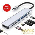 7 em 1: 4K30Hz + PD + SD + TF + 1 USB3.0 + 1 USB2.0 + 1 USB2.0 + 1 Tipo C