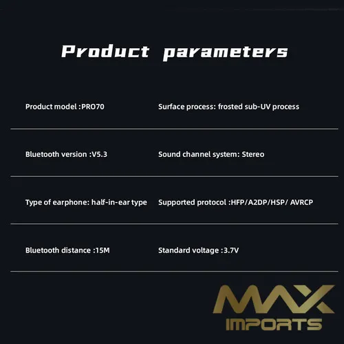Fone De Ouvido Sem Fio PRO-70 Bluetooth 5.3 com Display Digital