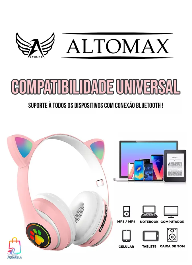 Adicione um toque de diversão e estilo ao seu som com o Fone de Ouvido Gatinho com LED RGB! Com um design superfofo e funcionalidades incríveis, este fone é ideal para quem busca qualidade de som e um visual único.
