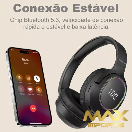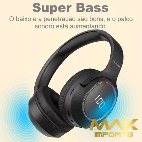 Super Bass: O fone de ouvido over-ear sem fio bluetooth com visor digital adota um novo design de diafragma, com melhores efeitos de graves e penetração, vocais limpos e claros e um campo sonoro crescente, trazendo uma experiência musical envolvente.