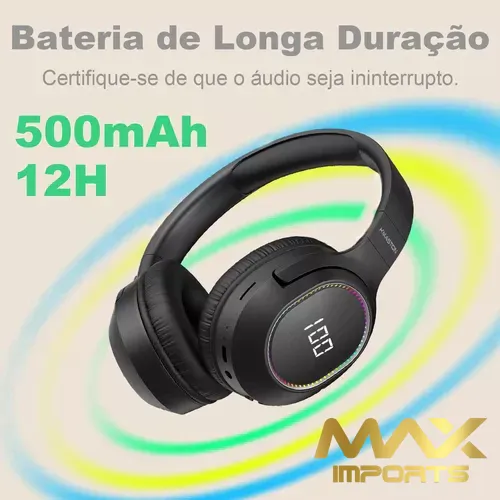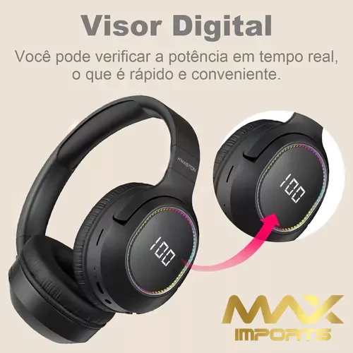 Efeito de Luz LED: Fone de ouvido over-ear sem fio bluetooth com visor digital com efeito de luz LED, cheio de ciência e tecnologia, mais atmosfera para usar.