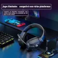 - Conforto Duradouro: Design ergonômico com almofadas auriculares ajustáveis que garantem conforto durante longas sessões de jogo.