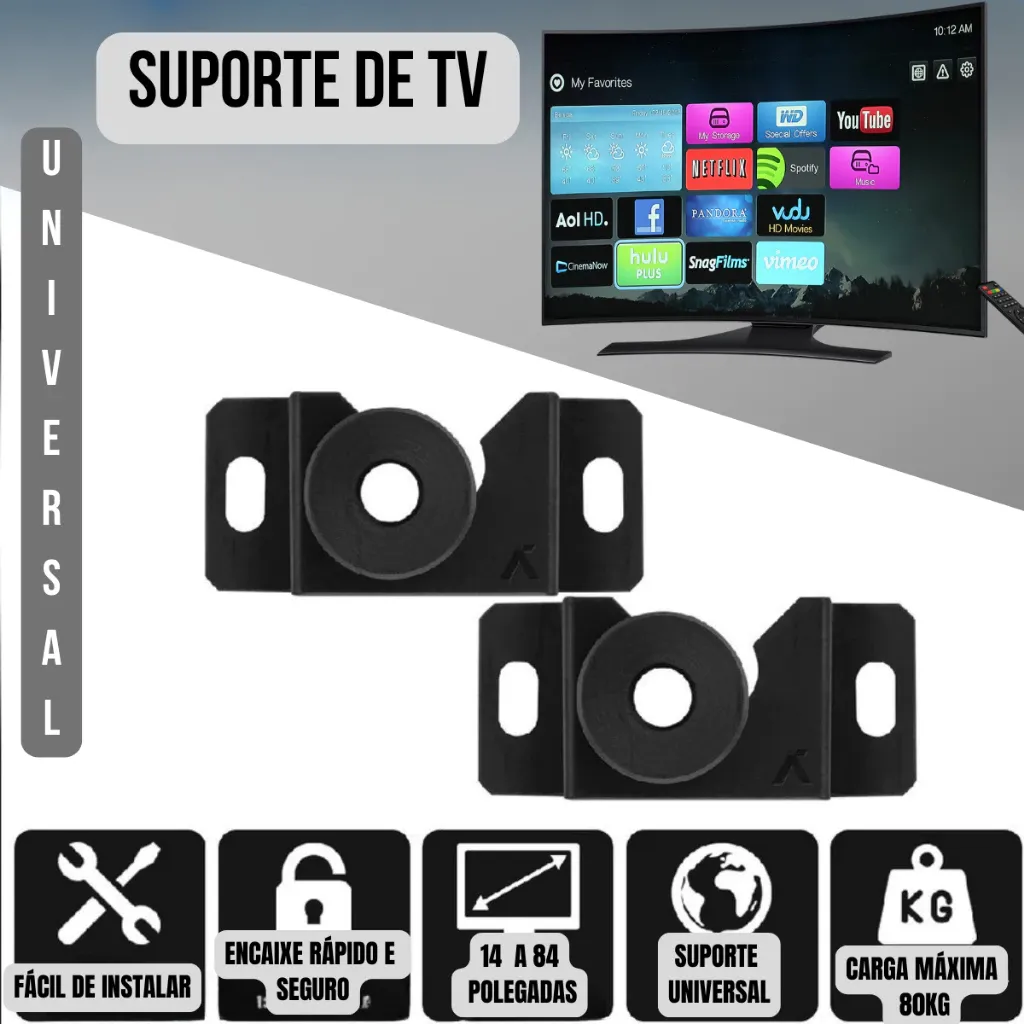 O Suporte Universal para TV foi desenvolvido para oferecer praticidade e segurança na instalação da sua televisão. Compatível com TVs de 14” a 84”, ele suporta até 80 kg e possui design robusto, garantindo firmeza e estabilidade.