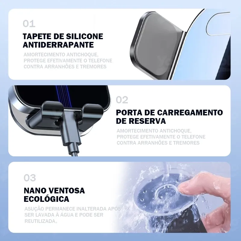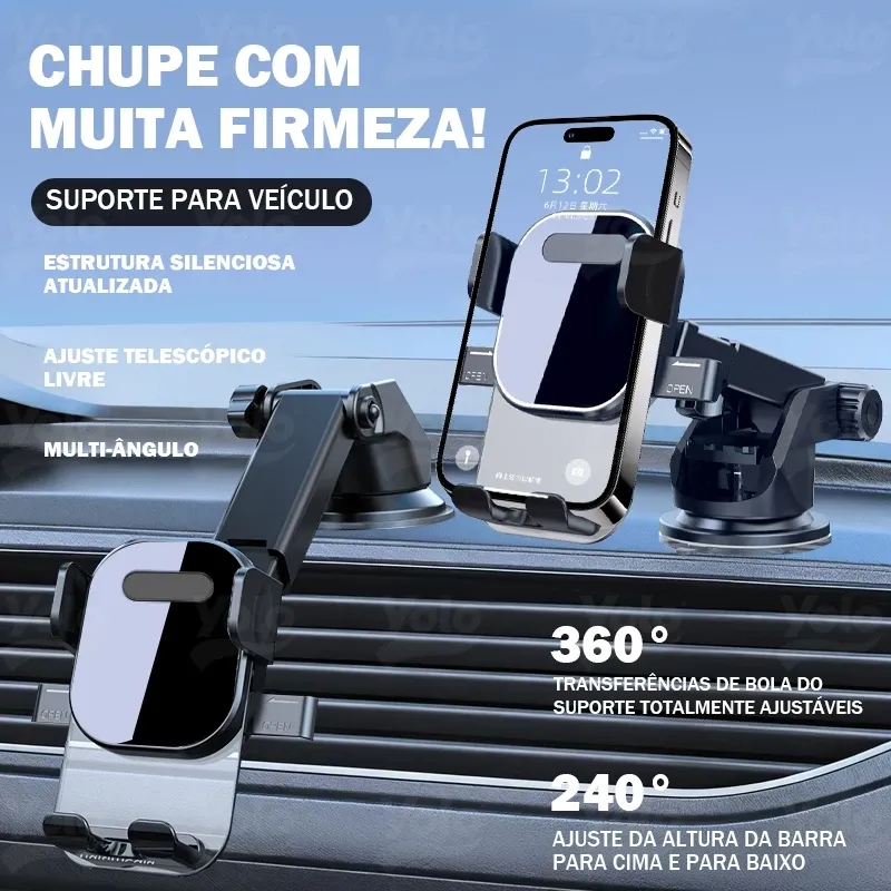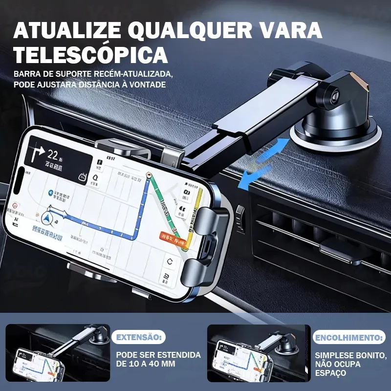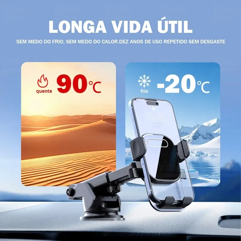 Ao manter o telefone fixo e visível, você evita que distrações o segurem com as mãos, contribuindo para uma condução mais segura.