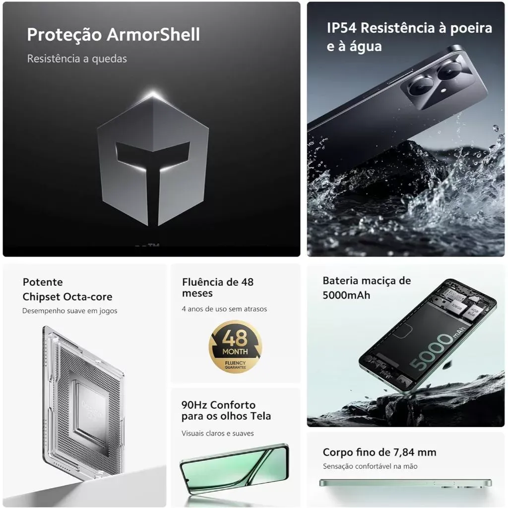 Smartphone Realme Note 60x RMX3938 4 GB de RAM/ 128 GB/Bateria de 5000mAh e tela de 6,74" 90Hz HD/Midnight Black (Preto)