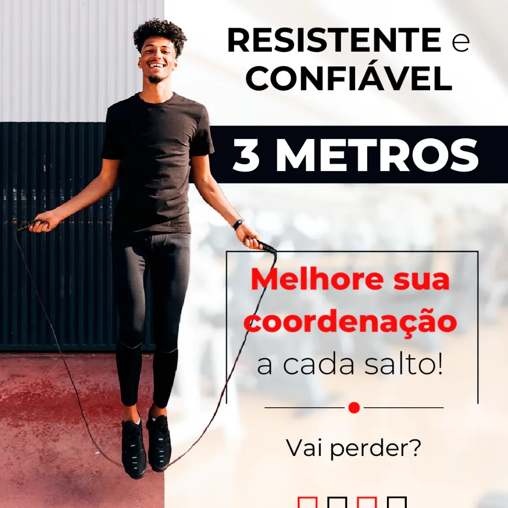 PRODUTO A PRONTA ENTREGA! ENVIO EM ATÉ 24H APÓS CONFIRMAÇÃO DA COMPRA! Apresentamos a corda de pular Speed Rope Fitness, o equipamento perfeito para quem busca intensificar seu treino e alcançar resultados incríveis! Com sua construção em materiais de alta qualidade, como o cabo de aço revestido em PVC e as manoplas emborrachadas, a Speed Rope Fitness proporciona um salto suave e preciso, permitindo que você alcance altas velocidades com facilidade e sem interrupções. Além disso, a corda de pular Speed Rope Fitness é extremamente versátil, podendo ser usada em diversos tipos de treino, como CrossFit, boxe, MMA, treinamento funcional e muito mais. ESPECIFICAÇÕES TÉCNICAS: - Material: Cabo em PVC revestido de espuma emborrachada, cordas em trama de aço revestido.- Medidas da corda: 3m de comprimento de 2mm de diâmetro.- Medidas do cabo: 15cm de comprimento e 3-4cm de diâmetro. Ao adquirir a Speed Rope Fitness, você estará investindo em sua saúde e bem-estar, pois ela é um excelente equipamento cardiovascular que ajuda a melhorar a resistência, queimar calorias, tonificar músculos e aumentar a coordenação motora. Não perca mais tempo e adquira agora mesmo a corda de pular Speed Rope Fitness, o equipamento que vai transformar seu treino e levar seus resultados a um novo patamar! OBS: Cores enviadas conforme disponibilidade, modelos podem variar mas trata-se do mesmo produto. Conteúdo da embalagem: 1x SPEED ROPE