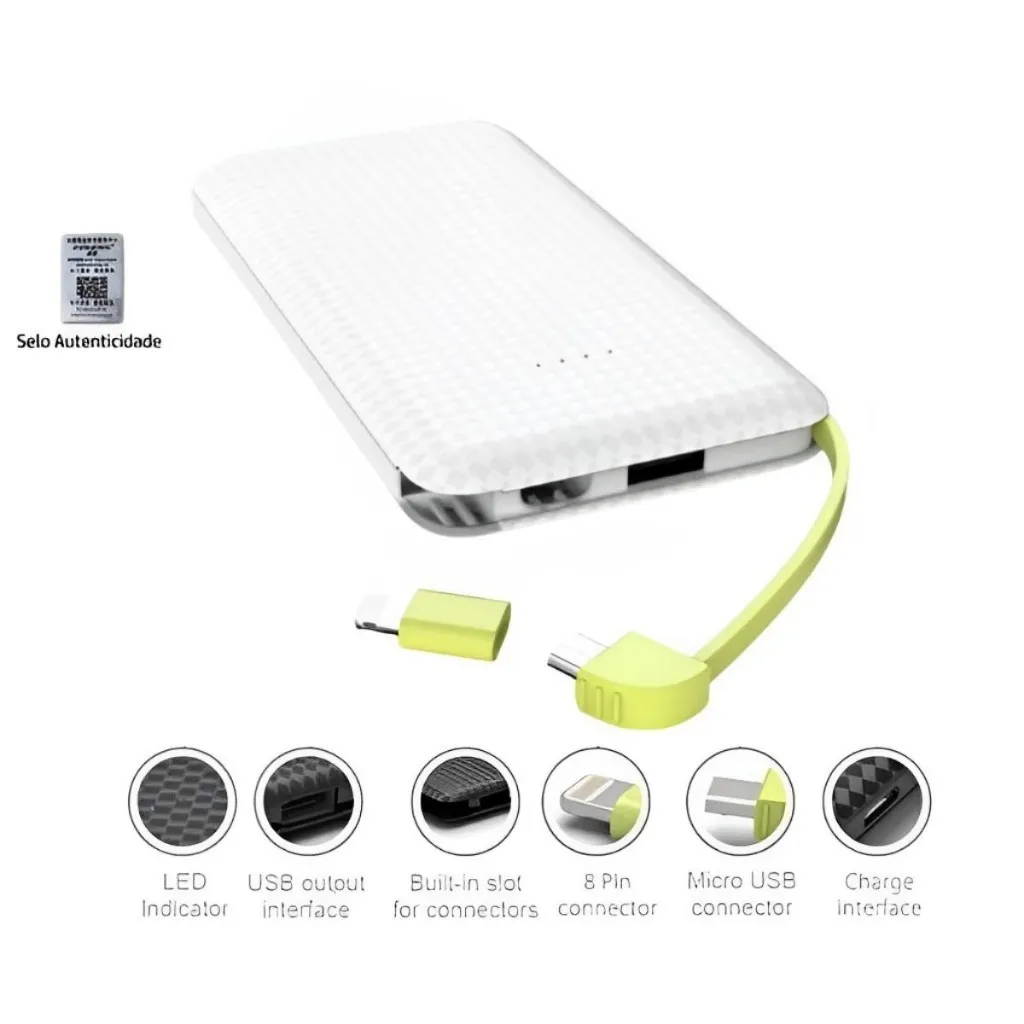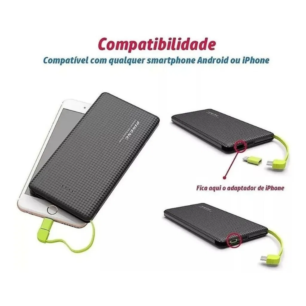 Mini Carregador portátil para Iphone e celular tipo C 2em1 com até 3 cargas (5.000mAh - verificar modelo da capacidade do celular)