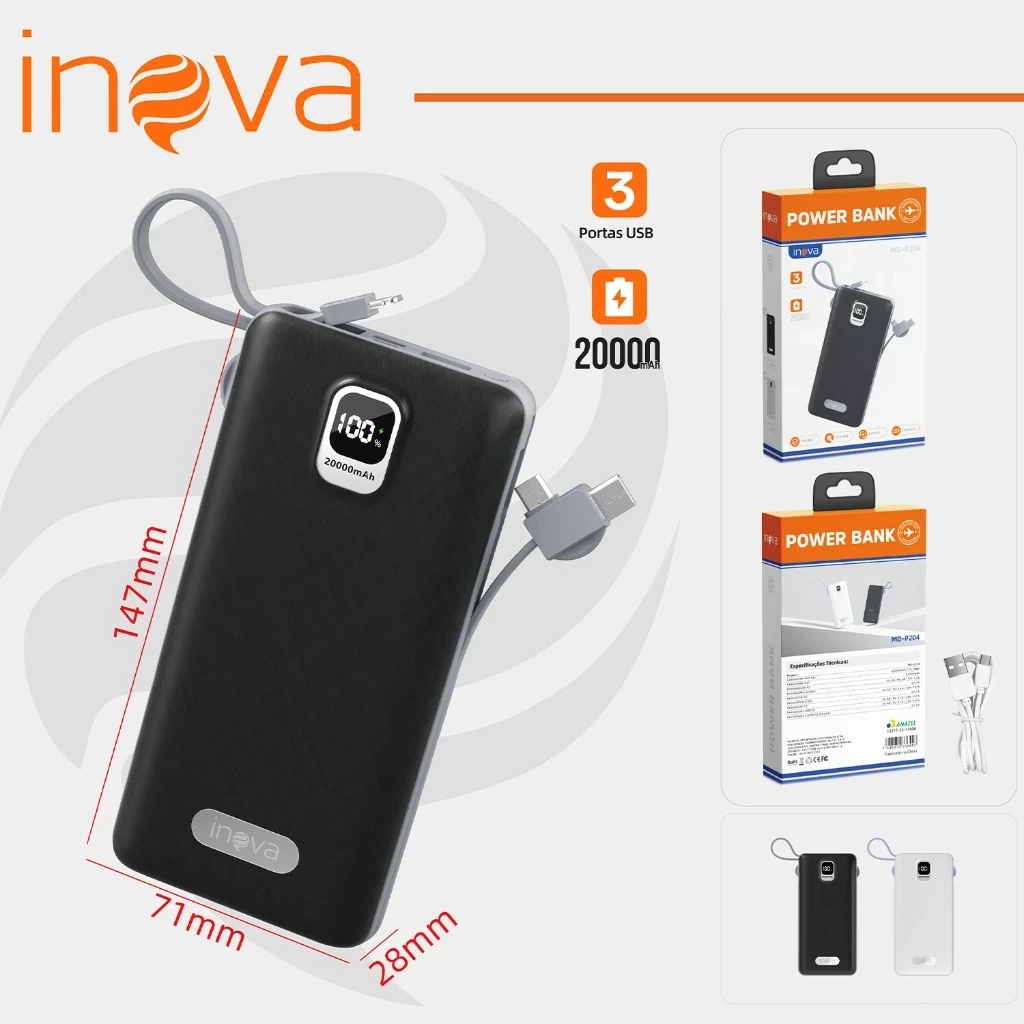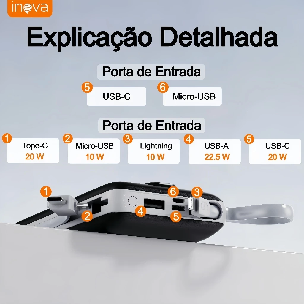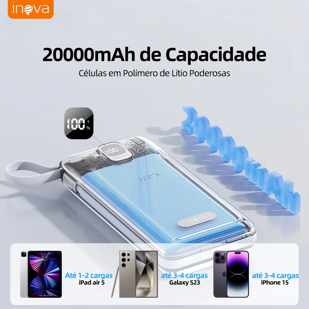 Leve e potente, oferece carga prolongada para smartphones, tablets e acessórios com saída de 22,5W, ideal para manter seus dispositivos ativos o dia todo. Perfeita para viagens, trabalho, deslocamentos e situações de emergência. Compre com confiança e leve energia confiável para qualquer lugar.