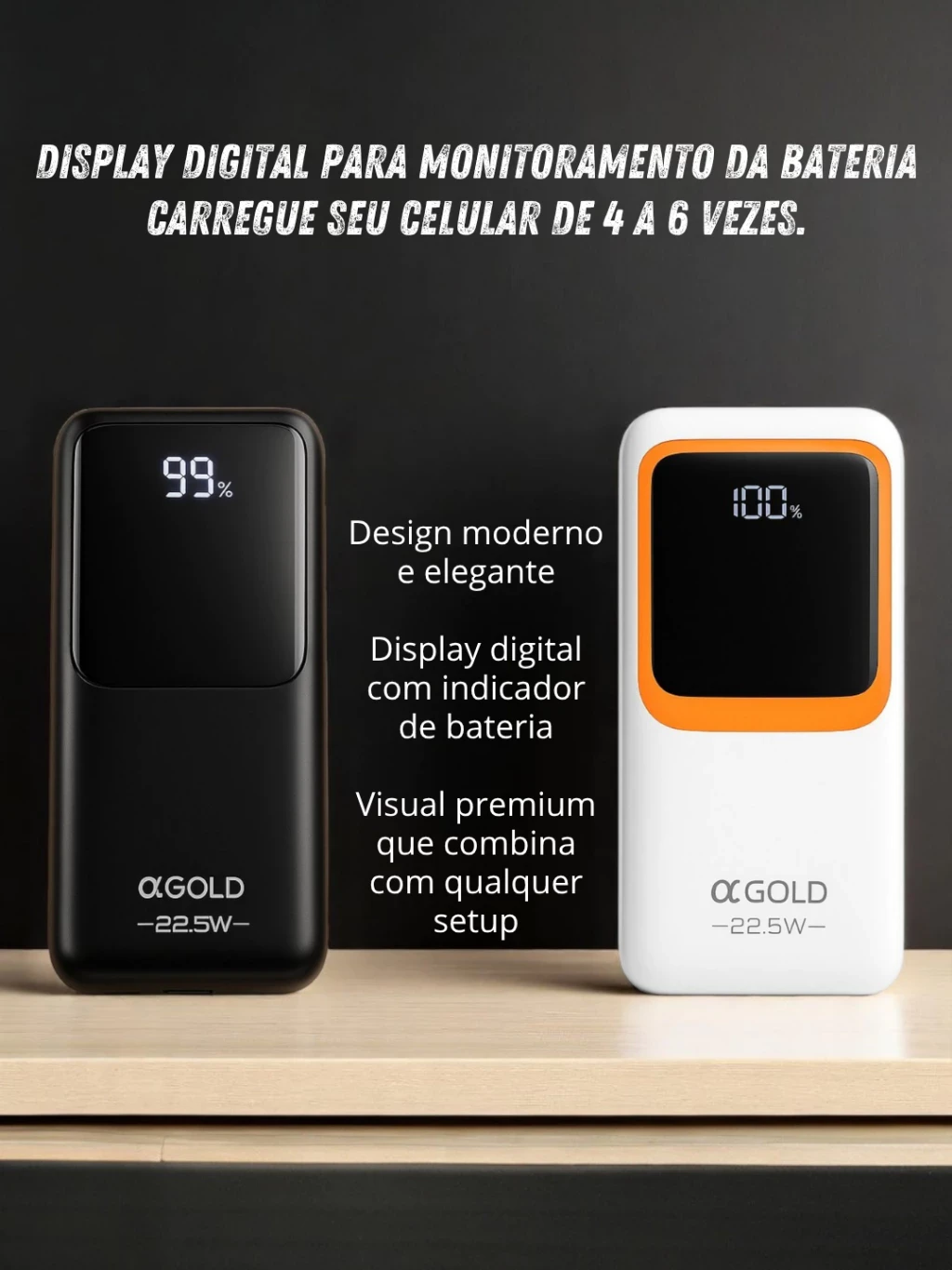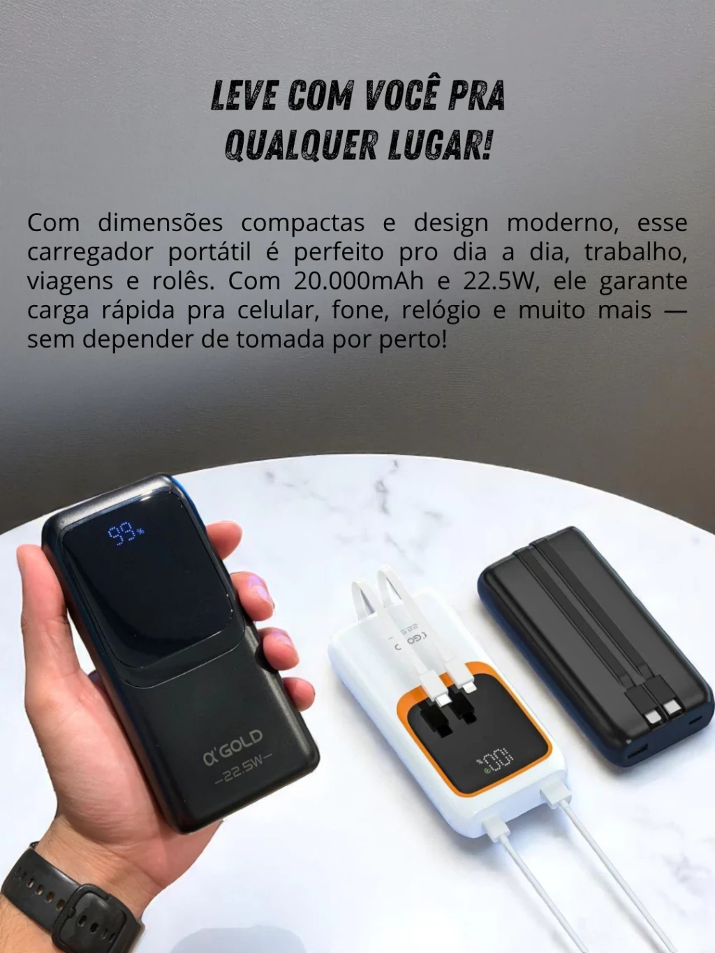 Carregador Portátil Power Bank Turbo PD 22.5W Display 20.000mAh - Agold - BTE-40