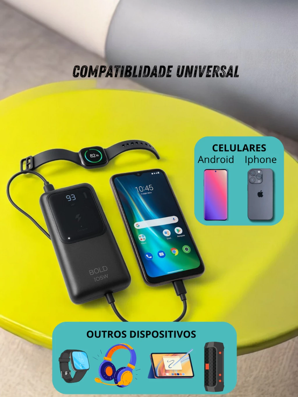 Bateria Externa 10000mAh 22.5W com cabos embutidos oferece recarga rápida e prática no dia a dia. Design compacto e leve, perfeito para viagens, trabalho e emergências. Saída de 22,5W garante carregamento eficiente de smartphones, tablets e acessórios. O display indica a carga restante, para você nunca ficar na mão. Cabos integrados facilitam o uso em qualquer situação.
