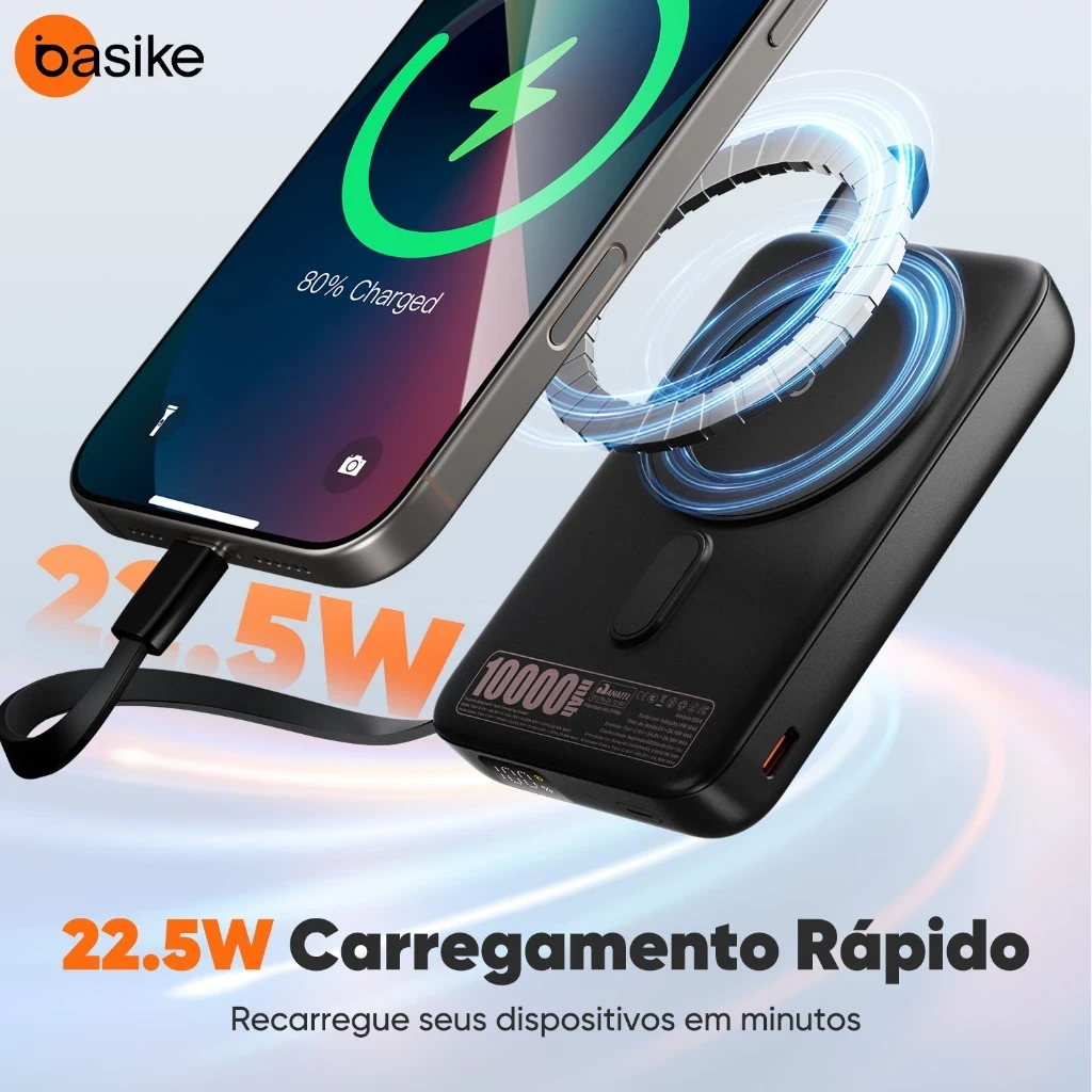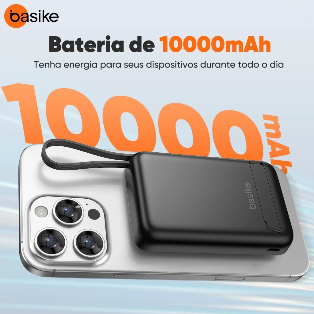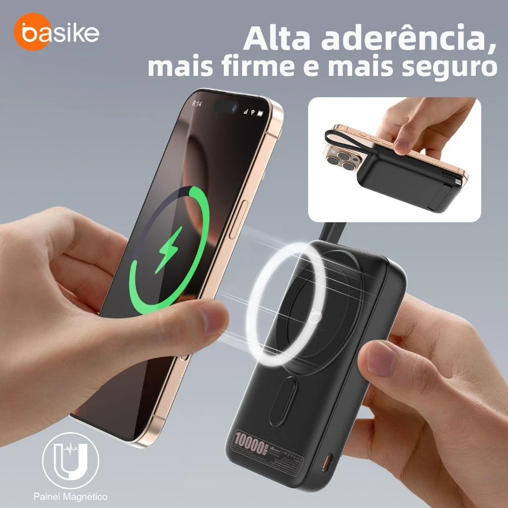 Basike 10000 mAh Carregador Portátil Indução para iPhone/Android Samsung Apple — carga sem fio confiável em movimento.
