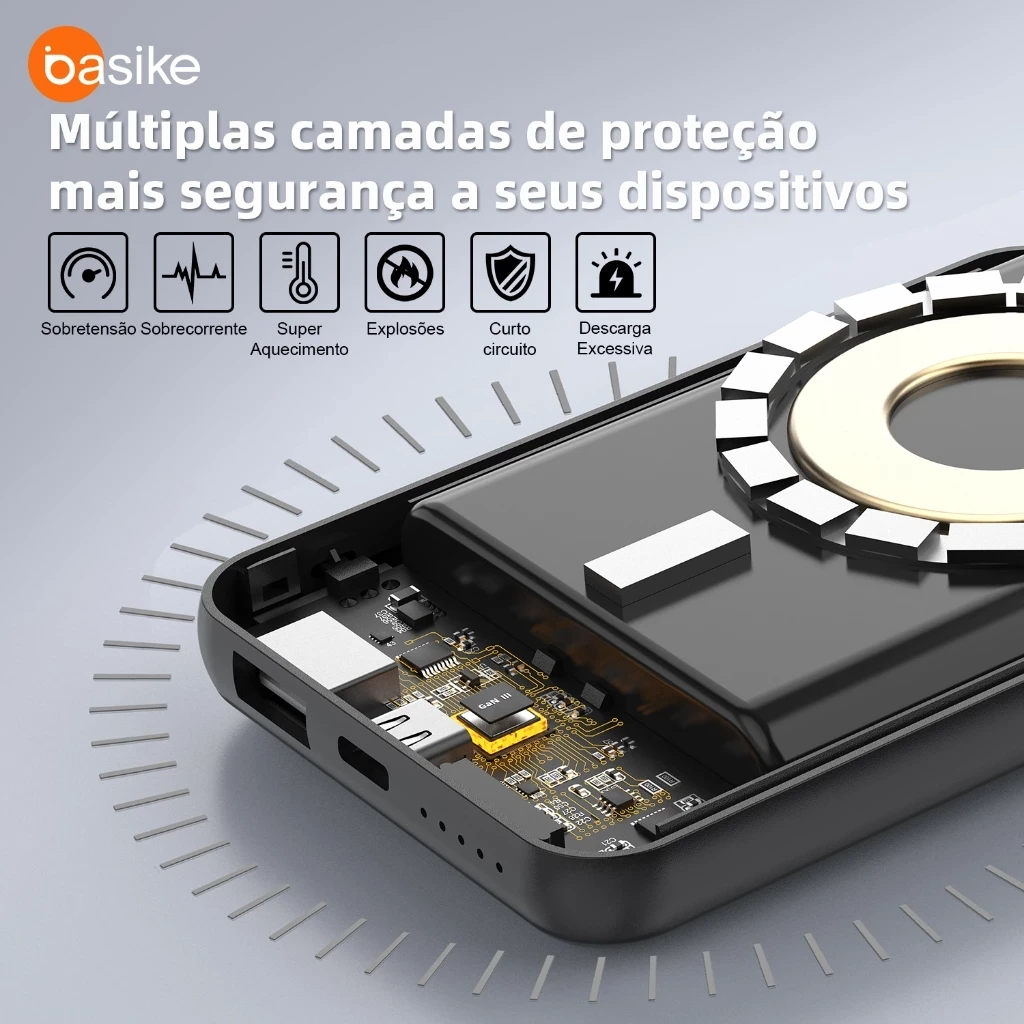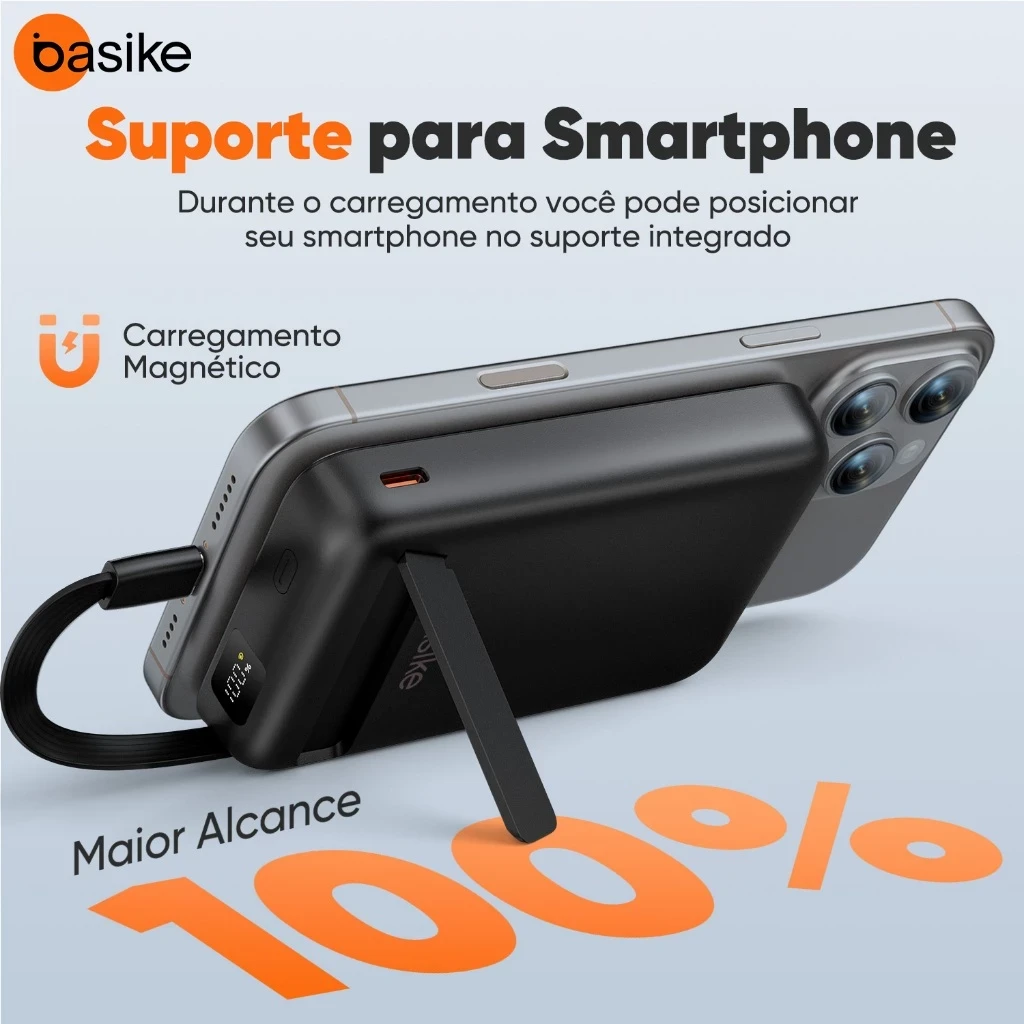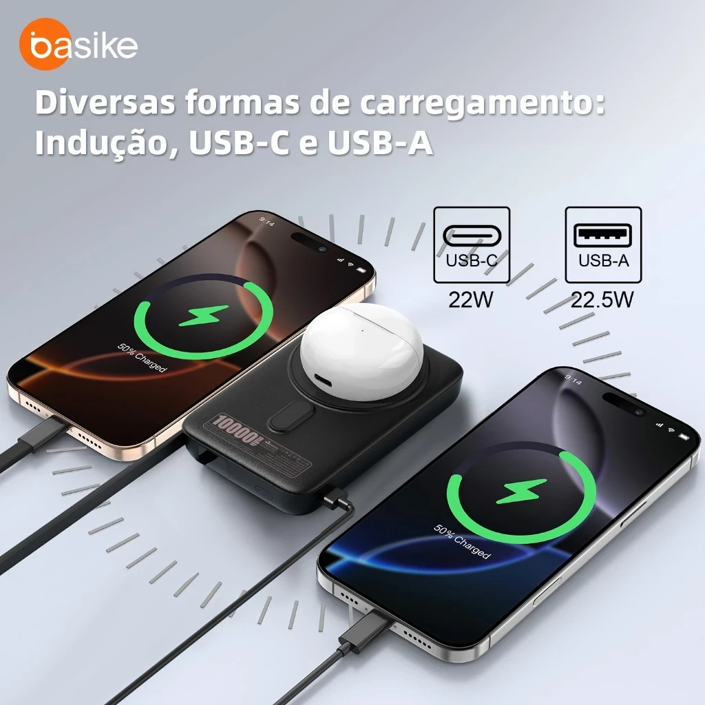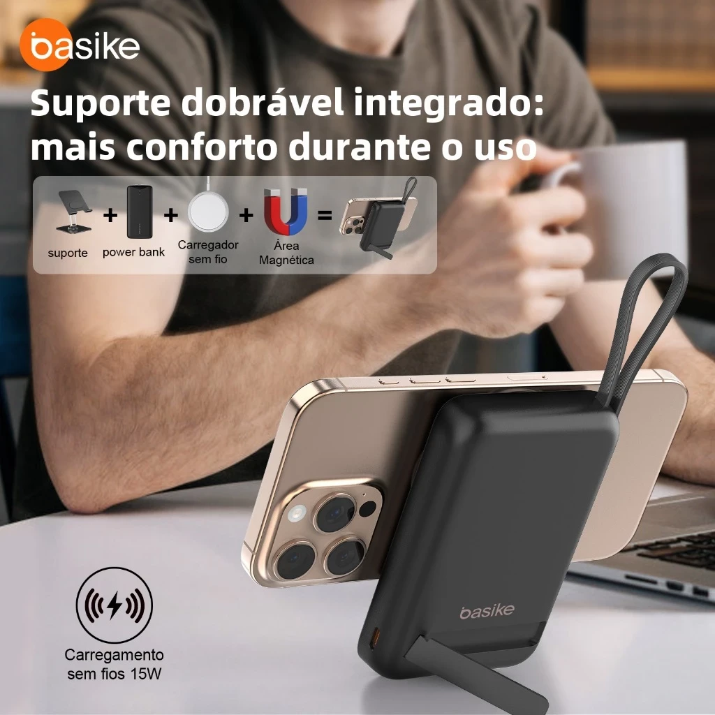 Basike 10000 mAh Carregador Portátil Indução para iPhone/Android Samsung Apple — carga sem fio confiável em movimento.
