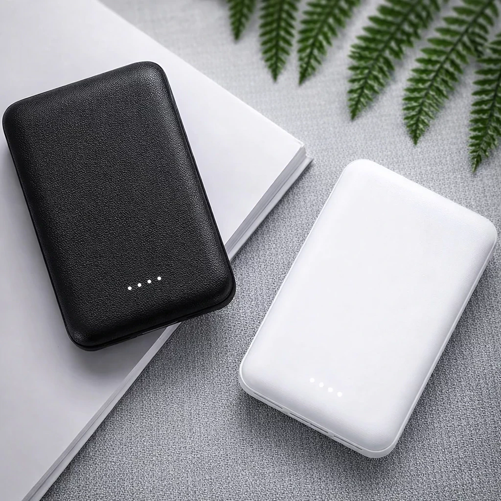Bateria portátil de 5000mAh com duas portas USB para recarregar smartphones e acessórios com velocidade e segurança.
