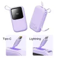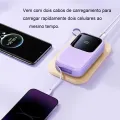 O power bank vem com 1 cabo Tipo-C e 1 cabo Lightning. Amplamente compatível com todos os dispositivos populares como iPhone, Samsung e outros dispositivos Android. Você não precisará mais carregar cabos extras.