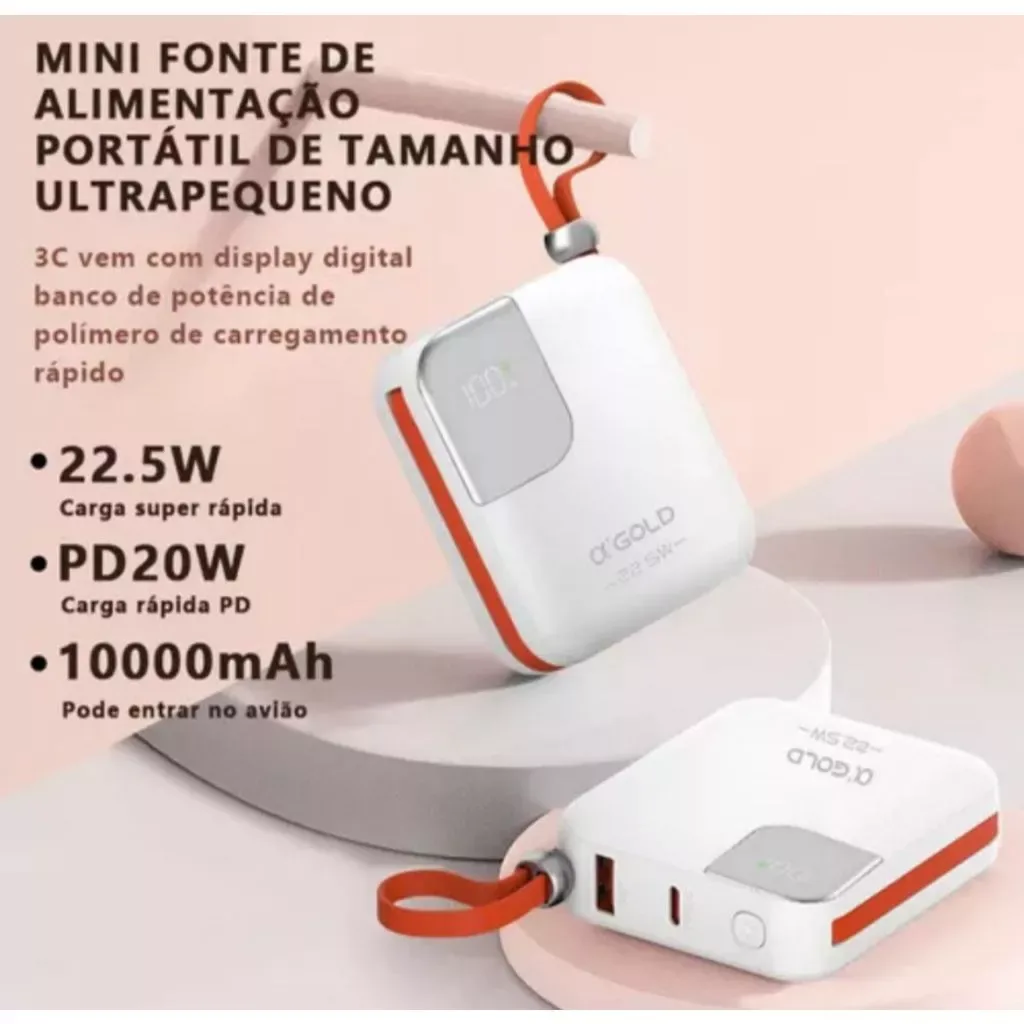 Carregador Portátil A’Gold BTE-48A Power Bank 10.000mah Universal Display