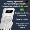 Power Bank de 10.000mAh com carregamento turbo de até 22.5W, ideal para uso diário, viagens curtas e emergências. Possui design compacto, leve e moderno, com display digital que facilita o acompanhamento do nível de bateria.