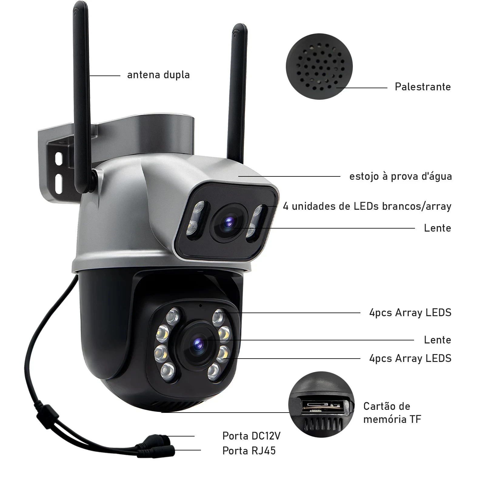Camera Q28B Externa Ip a Prova D'água Wifi Dupla 2 Em 1 com Visao Noturna C/ Infravermelho Câmera De Vigilância.