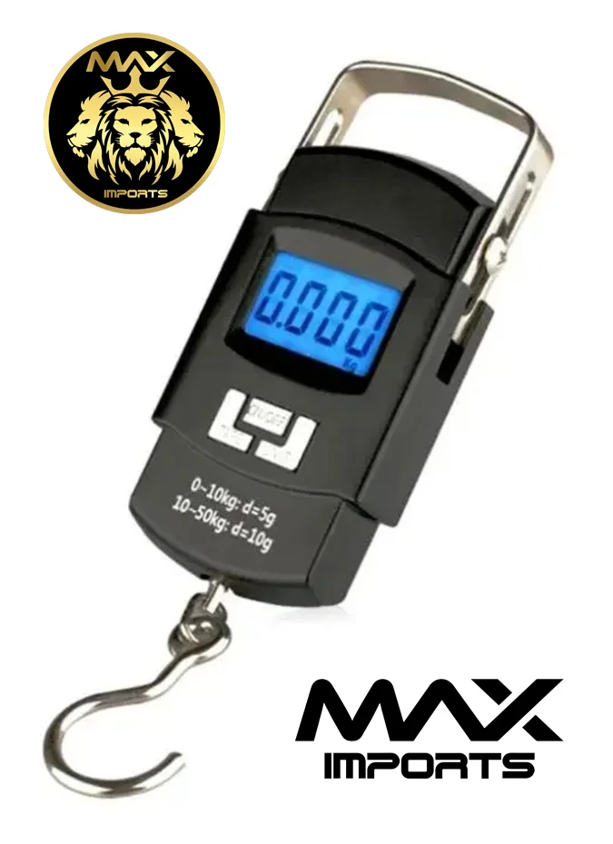 Mini Balança Digital Display Portátil De Mão gancho Até 50kg Trava Mala Bagagem Pesca Cor Preto
