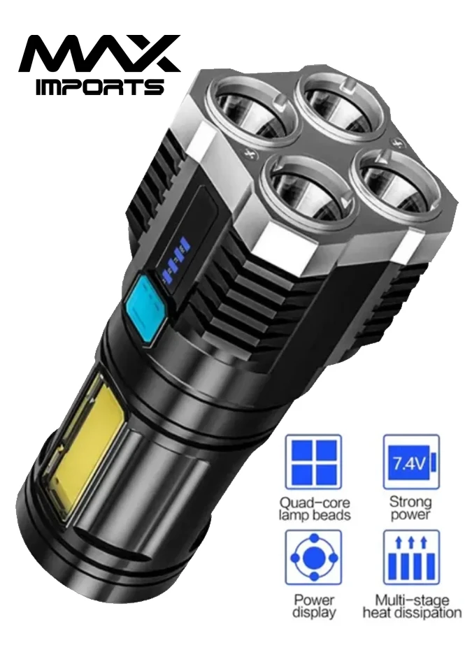 Lanterna LED Recarregável USB de Longo Alcance com 4 LEDs - Modelo L-19: Potente e Portátil
