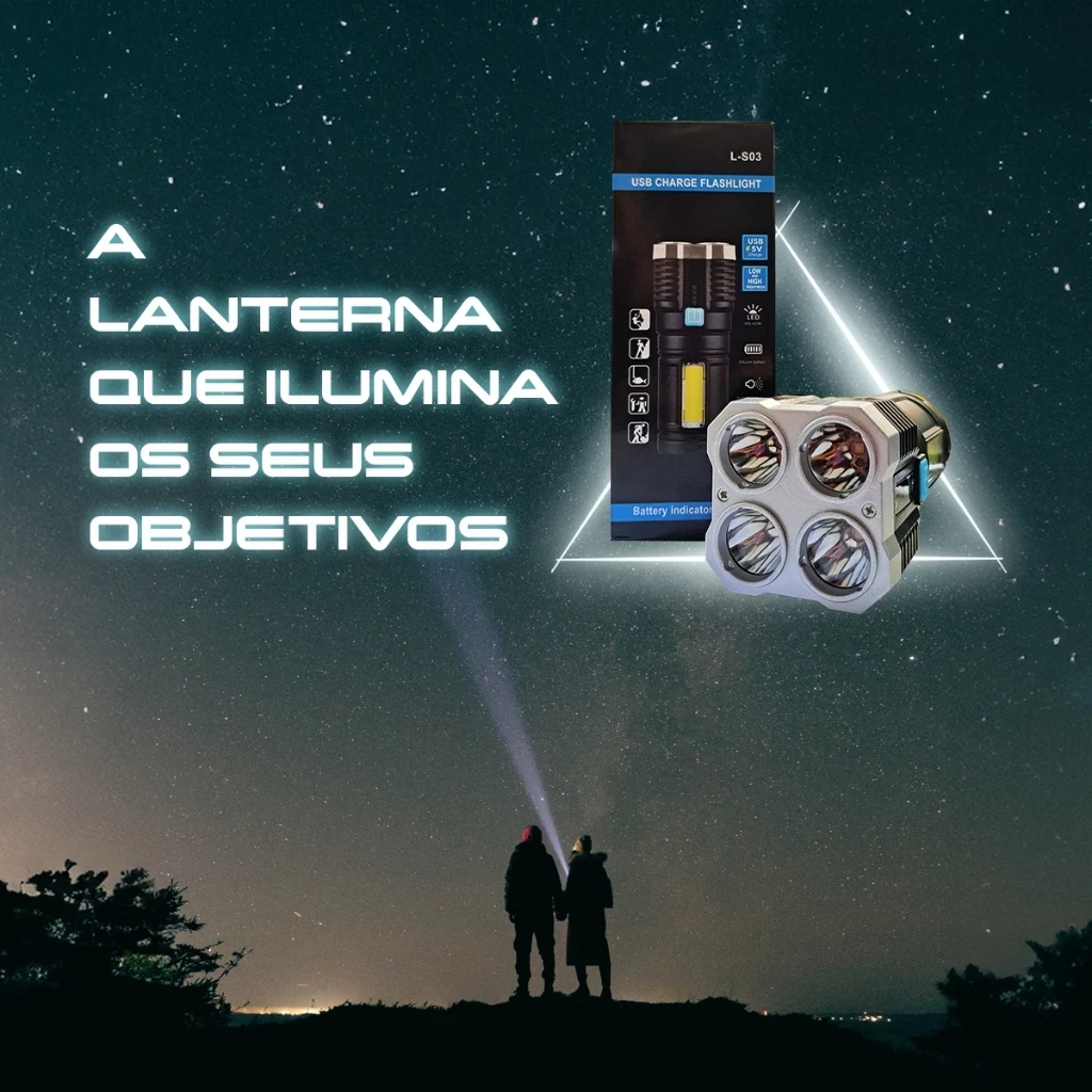 A Lanterna Tática L-19 com tecnologia americana, projetada para oferecer desempenho excepcional e durabilidade incomparável. Com quatro potentes LEDs ULTRA de 800 Lumens, esta lanterna é capaz de iluminar longas distâncias com facilidade, tornando-a a escolha ideal para uma ampla gama de situações.