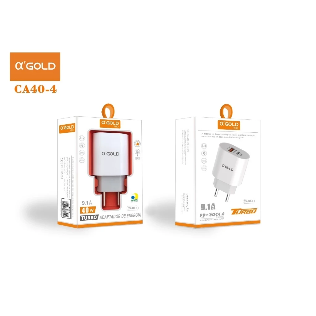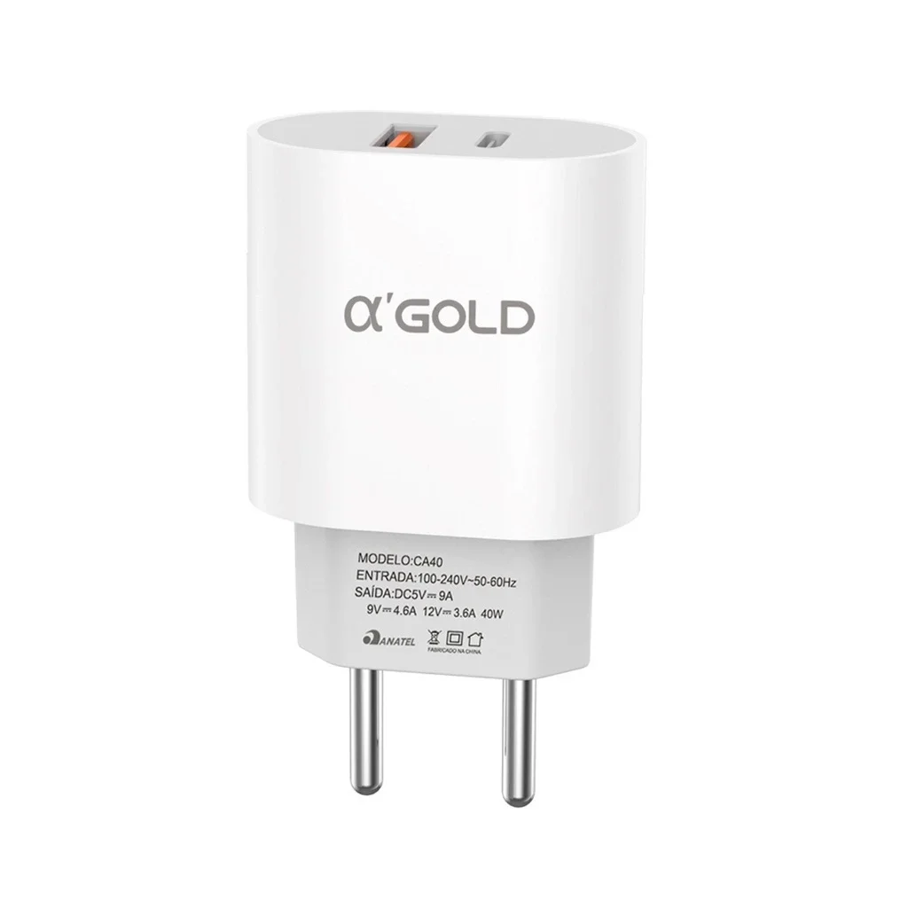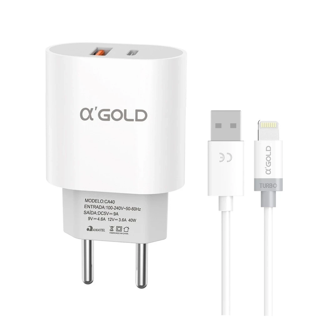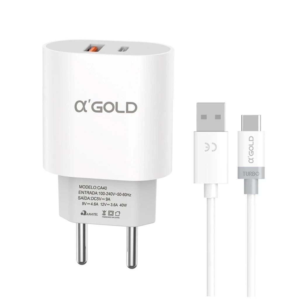 Carregador Turbo 40w Usb Para iPhone Tipo-C V8 Cor Branco