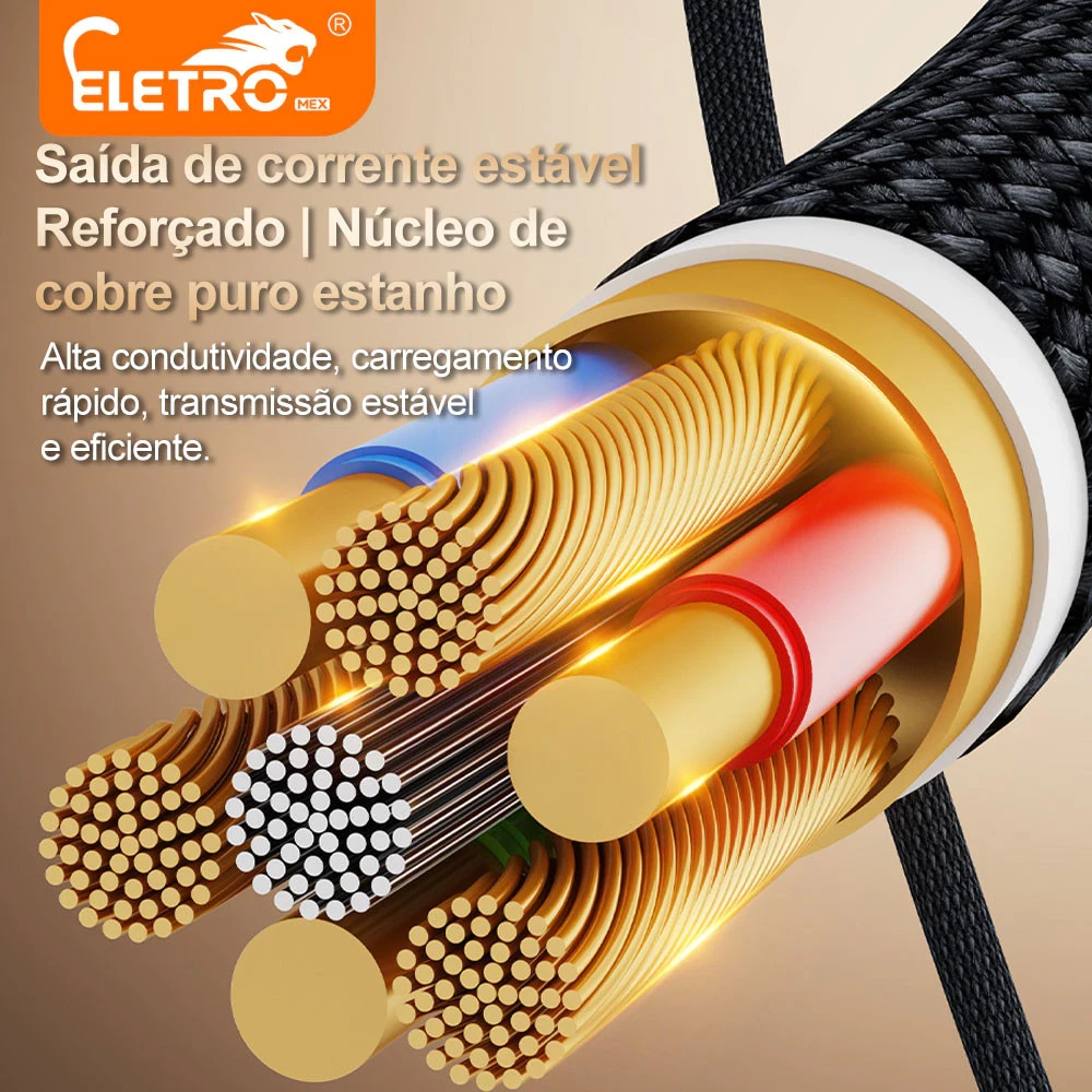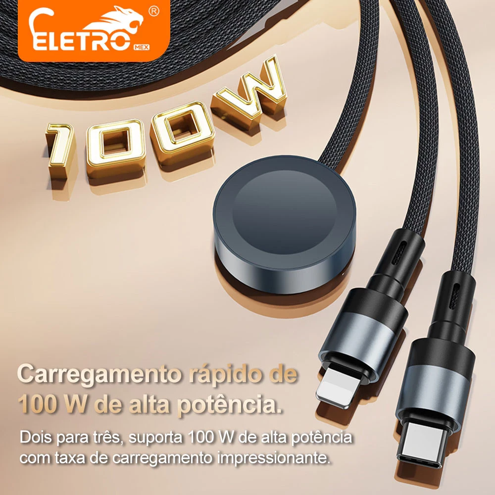 Cabo trançado de carregamento rápido ELETRO EL-3142 Dual-to-Triple 100W