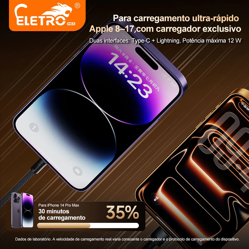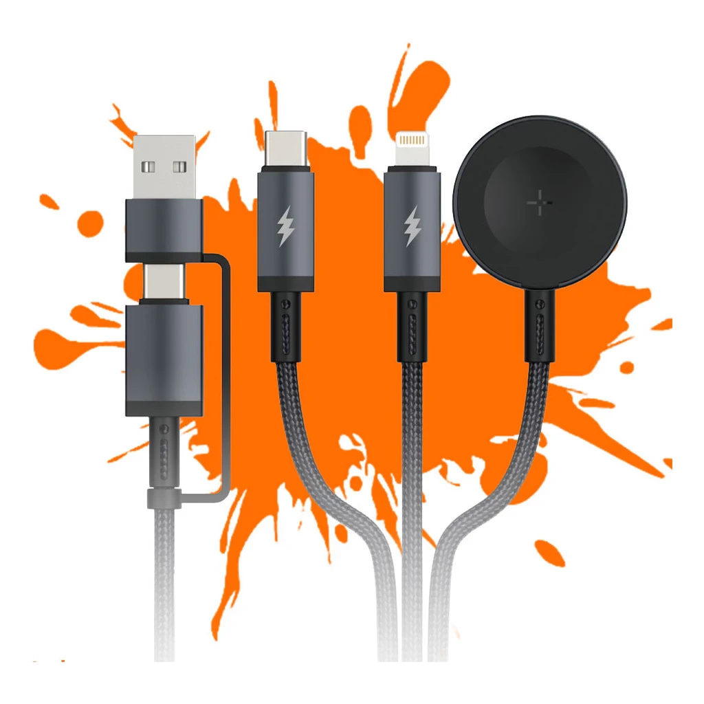 Um único cabo satisfaz as necessidades de carregamento simultâneo para Apple, Android e vários dispositivos.
