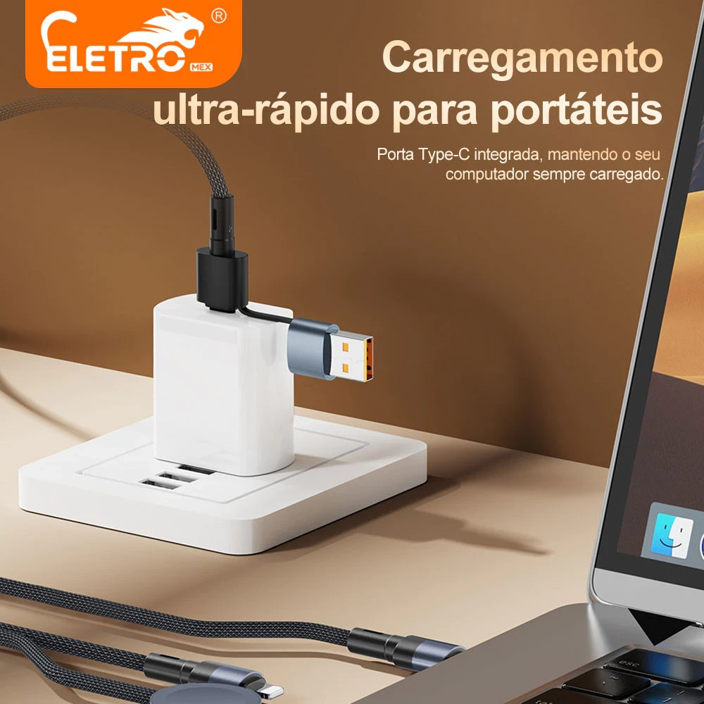 Portabilidade em viagens: alivie sua carga carregando apenas um cabo para alimentar todos os seus dispositivos, eliminando a necessidade de vários cabos de carregamento.