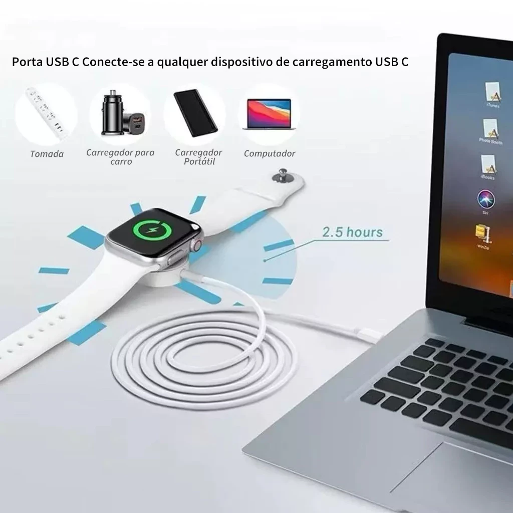 - Recarrega seus smartwatch apple entre 1h30min e 2hrs.